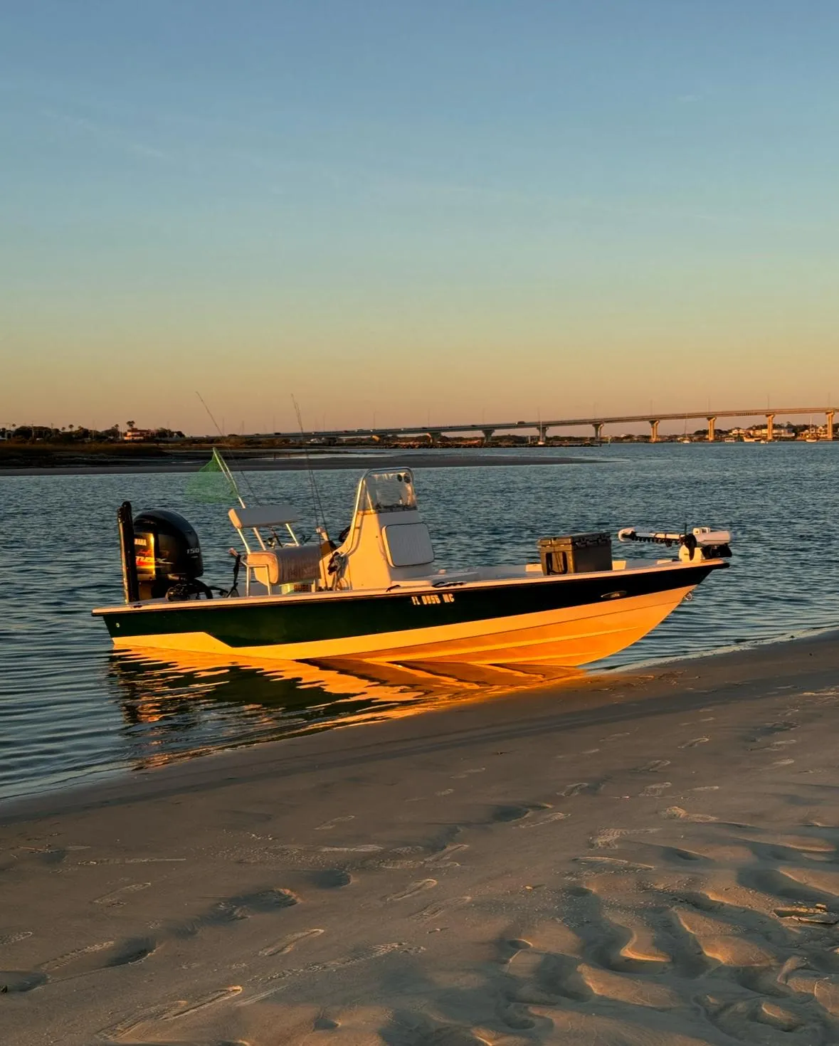 1900v Pathfinder, equipped with a 150hp VMAX SHO Yamaha. It is designed for precision in shallow waters and provides a smooth ride for up to three guests.